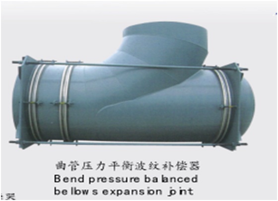 該類補(bǔ)償器是由兩個(gè)工作波紋管,一個(gè)平衡波紋管、端接管、中間接管、彎頭、封頭和端板及平衡推桿等裝置組成,其中平衡推桿在端板連接處帶有球面和錐面墊圈構(gòu)成滑動(dòng)體,動(dòng)全在補(bǔ)償器進(jìn)行橫向補(bǔ)償時(shí)自行調(diào)整。壓力平衡型補(bǔ)償器可以對(duì)彎曲管段產(chǎn)生的橫向位移通過(guò)工作波紋管補(bǔ)償吸收,工作波紋管同時(shí)補(bǔ)償吸收直管段內(nèi)的軸向位移并通過(guò)平衡波紋和被平衡,該補(bǔ)償器一般用于“T”型和“空間門”型管道的位移補(bǔ)償,軸向剛度值為工作波紋管與平衡波紋管之和,軸向剛度較大,因此彈反力較大,該型補(bǔ)償器能平衡介質(zhì)壓力推力。
